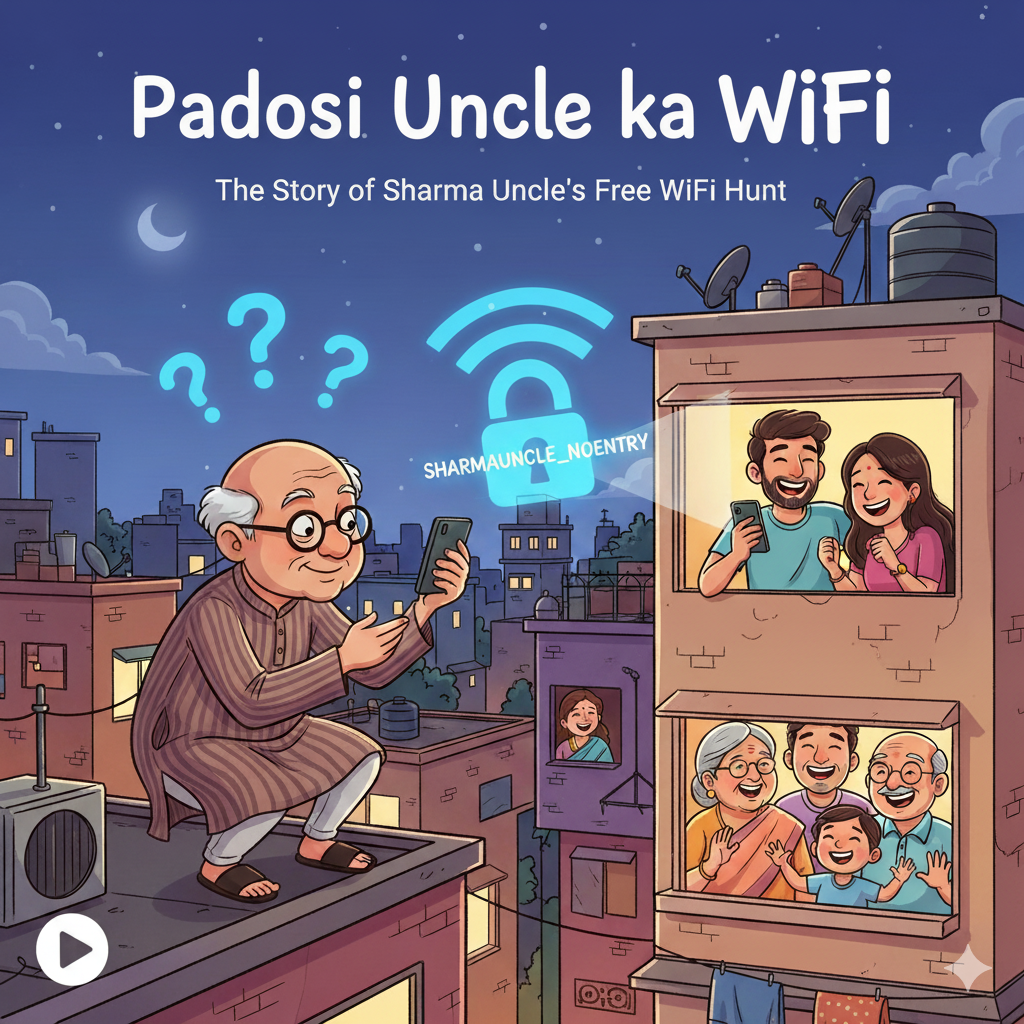 рдЕрд░реЗ рднрд╛рдИ, рд╣рдорд╛рд░реЗ рдкрдбрд╝реЛрд╕реА рд╢рд░реНрдорд╛ рдЕрдВрдХрд▓ рдмрдбрд╝реЗ рдЪрд╛рд▓рд╛рдХ рдирд┐рдХрд▓реЗ!тАЭ тАЬрдкреВрд░реЗ рдореЛрд╣рд▓реНрд▓реЗ рдХрд╛ рд╡рд╛рдИрдлрд╛рдИ рдпреВрдЬрд╝ рдХрд░ рдЪреБрдХреЗ рд╣реИрдВ тАФ рдмрд╕ рдкрд╛рд╕рд╡рд░реНрдб рдкреВрдЫрдиреЗ рдХрд╛ рддрд░реАрдХрд╛ рд╣рд░ рдмрд╛рд░ рдирдпрд╛ рд╣реЛрддрд╛ рд╣реИ! ЁЯШЬтАЭ тАЬрдХрднреА рдХрд╣рддреЗ рд╣реИрдВ тАФ тАШрдмреЗрдЯрд╛, рд╡реЛ рдЬреЛ рдЪрд╛рд░ рдЕрдХреНрд╖рд░ рд╡рд╛рд▓рд╛ рдиреЗрдЯ рд╣реИ рдитАж рдЙрд╕рдХрд╛ рдирд╛рдо рдХреНрдпрд╛ рдерд╛?тАЩтАЭ тАЬрдлрд┐рд░ рдЕрдЧрд▓реА рдмрд╛рд░ рдмреЛрд▓рддреЗ рд╣реИрдВ тАФ тАШрдЕрд░реЗ рд╡реЛтАж рдЬрд╣рд╛рдБ рддреБрдореНрд╣рд╛рд░рд╛ рдореЛрдмрд╛рдЗрд▓ рдЕрдкрдиреЗ рдЖрдк рдЬреБрдбрд╝ рдЬрд╛рддрд╛ рд╣реИ!тАЩ ЁЯШВтАЭ рдЕрдм рддреЛ рд╣рдордиреЗ рднреА рдирдпрд╛ рдкрд╛рд╕рд╡рд░реНрдб рд░рдЦ рджрд┐рдпрд╛ рд╣реИ тАФ тАШSharmaUncle_NoEntryтАЩ ЁЯШОЁЯУ╢тАЭ рддреЛ рджреЛрд╕реНрддреЛрдВ, рдпрд╛рдж рд░рдЦреЛтАжтАЭ тАЬрдЗрдВрдбрд┐рдпрд╛ рдореЗрдВ рджреЛ рдЪреАрдЬрд╝реЗрдВ рдХрднреА рдлреНрд░реА рдирд╣реАрдВ рджреЗрдиреА рдЪрд╛рд╣рд┐рдП тАФ рд╡рд╛рдИрдлрд╛рдИ рдФрд░ рд░рд┐рд╢реНрддреЗрджрд╛рд░реА рдореЗрдВ рд╕рд▓рд╛рд╣! ЁЯШВтШХтАЭ