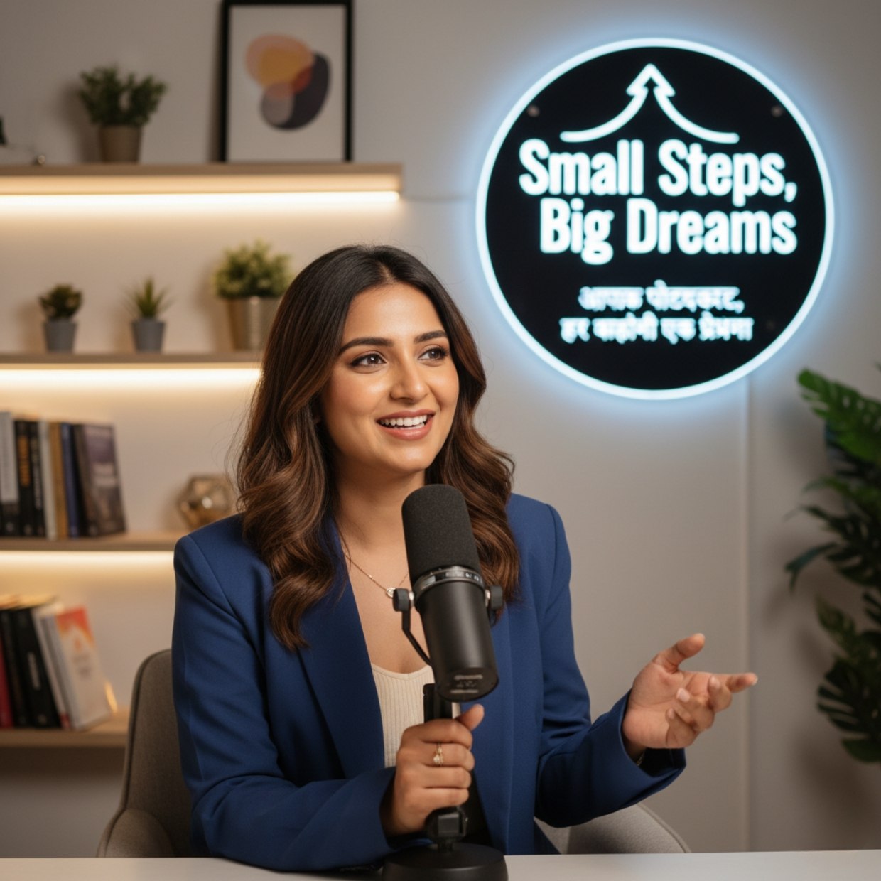 рдирдорд╕реНрдХрд╛рд░ рджреЛрд╕реНрддреЛрдВ! рдЖрдк рд╕реБрди рд░рд╣реЗ рд╣реИрдВ Small Steps, Big Dreams, рдФрд░ рдореИрдВ рд╣реВрдБ рдЖрдкрдХреА рд╣реЛрд╕реНрдЯ рдХрд╡реНрдпрд╛ рд╢рд░реНрдорд╛ред" "рдЖрдЬ рд╣рдо рд▓рд╛рдП рд╣реИрдВ рдПрдХ рдРрд╕реА рдХрд╣рд╛рдиреА рдЬреЛ рдЖрдкрдХреЗ рджрд┐рд▓ рдХреЛ рдЫреВ рдЬрд╛рдПрдЧреА!" рдЖрдЬ рд╣рдорд╛рд░реЗ рд╕рд╛рде рд╣реИрдВ рдПрдХ рдРрд╕реЗ рд╢рдЦрд╝реНрд╕, рдЬрд┐рдирдХреА рдЫреЛрдЯреА-рд╕реА рд╢реБрд░реБрдЖрдд рдиреЗ рд╣рдЬрд╛рд░реЛрдВ рд▓реЛрдЧреЛрдВ рдХреЛ рдкреНрд░реЗрд░рд┐рдд рдХрд┐рдпрд╛ тАФ рд╣рдорд╛рд░реЗ рдЧреЗрд╕реНрдЯ рд╣реИрдВ рдЕрдорд┐рдд рдЪреМрд╣рд╛рди!" рдЕрдорд┐рдд, рд╕реНрд╡рд╛рдЧрдд рд╣реИ рдЖрдкрдХреЗ рд╢реЛ рдореЗрдВ! рдмрддрд╛рдЗрдП, рд╢реБрд░реБрдЖрдд рдХреИрд╕реЗ рд╣реБрдИ?" рдзрдиреНрдпрд╡рд╛рдж рдХрд╡реНрдпрд╛! рдЕрд╕рд▓ рдореЗрдВ, рд╢реБрд░реБрдЖрдд рд╢реМрдХрд╝ рд╕реЗ рд╣реБрдИ рдереА тАФ рдорд╛рдБ рдХреЗ рд╕рд╛рде рдХреЗрдХ рдмрдирд╛рддреЗ-рдмрдирд╛рддреЗ рд▓рдЧрд╛ рдХрд┐ рдЗрд╕реЗ рдкреНрд░реЛрдлреЗрд╢рди рдореЗрдВ рдмрджрд▓рд╛ рдЬрд╛ рд╕рдХрддрд╛ рд╣реИред" рдкрд╣рд▓рд╛ рдСрд░реНрдбрд░ рд╕рд┐рд░реНрдл тВ╣300 рдХрд╛ рдерд╛... рд▓реЗрдХрд┐рди рд╡рд╣реА рдкрд╣рд▓рд╛ рдХрджрдо рд╕рдмрд╕реЗ рдмрдбрд╝рд╛ рд╕рд╛рдмрд┐рдд рд╣реБрдЖред" рдХрдорд╛рд▓ рд╣реИ! рдПрдХ рдЖрдЦрд╝рд┐рд░реА рд╕рд╡рд╛рд▓ тАФ рдирдП рд▓реЛрдЧреЛрдВ рдХреЛ рдХреНрдпрд╛ рд╕рд▓рд╛рд╣ рджреЗрдВрдЧреЗ?" рдмрд╕ рдЗрддрдирд╛ рдХрд╣реВрдБрдЧрд╛ тАФ рд╢реБрд░реБрдЖрдд рдЫреЛрдЯреА рд╣реЛ рд╕рдХрддреА рд╣реИ, рд▓реЗрдХрд┐рди рдЕрдЧрд░ рджрд┐рд▓ рдмрдбрд╝рд╛ рд╣реИ, рддреЛ рд╕рдкрдиреЗ рджреВрд░ рдирд╣реАрдВред" рд╡рд╛рд╣! рдХреНрдпрд╛ рдЦреВрдмрд╕реВрд░рдд рдмрд╛рдд рдХрд╣реА рдЖрдкрдиреЗ, рдЕрдорд┐рдд!" "рджреЛрд╕реНрддреЛрдВ, рдЕрдЧрд░ рдЖрдкрдХреЛ рдпреЗ рдХрд╣рд╛рдиреА рдкрд╕рдВрдж рдЖрдИ рд╣реЛ, рддреЛ рдЗрд╕ рдПрдкрд┐рд╕реЛрдб рдХреЛ рд╢реЗрдпрд░ рдХрд░реЗрдВ рдФрд░ рдЕрдкрдиреЗ рджреЛрд╕реНрддреЛрдВ рдХреЛ рднреА рдкреНрд░реЗрд░рд┐рдд рдХрд░реЗрдВ!" рдлрд┐рд░ рдорд┐рд▓реЗрдВрдЧреЗ рдЕрдЧрд▓реЗ рдПрдкрд┐рд╕реЛрдб рдореЗрдВ тАФ рдЬрд╣рд╛рдБ рд╣рд░ рдХрд╣рд╛рдиреА рд╣реЛрдЧреА рдПрдХ рдирдИ рдкреНрд░реЗрд░рдгрд╛!"
